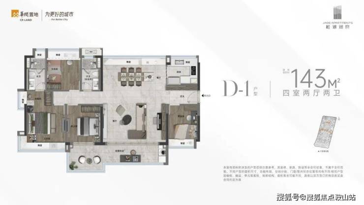 ✅【约8.6m阳台 中轴园景 南北大通厅户型 】D-1户型 143㎡ 四房两厅两卫