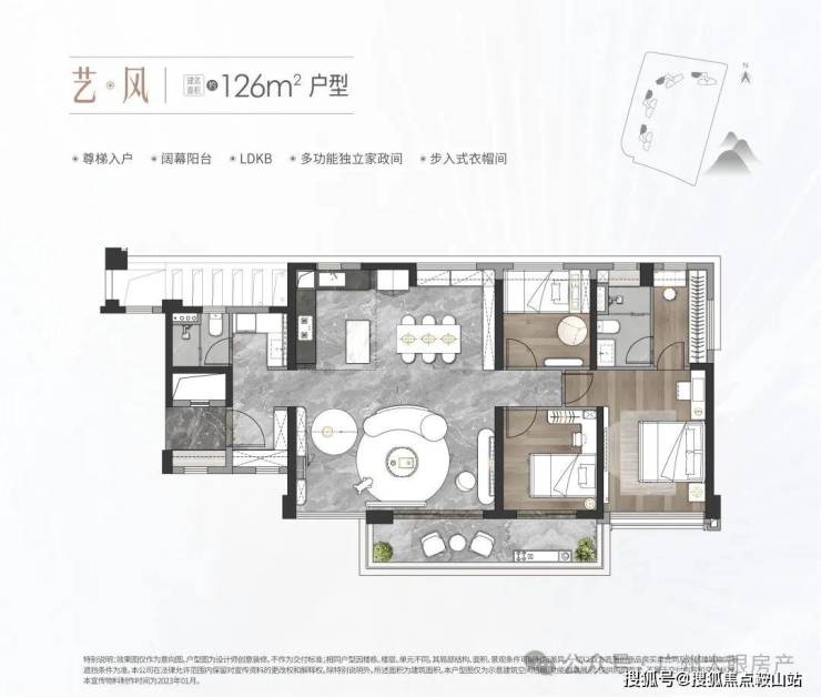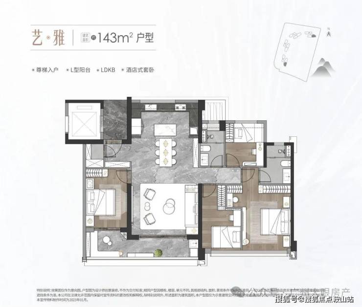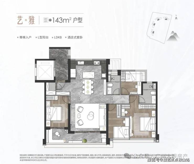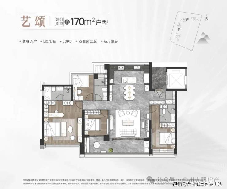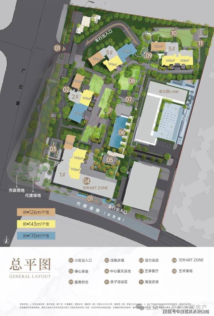 中海麓府体量不大,仅4栋住宅,40多层高的住宅(1#高40层,2-3#高44层,5#高41层),两梯三户,底下规划有1所12班幼儿园+1栋自持物业,货量在500套上下,它的面积段有三种,分别是建面约126㎡三房、143㎡和170㎡的四房