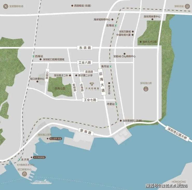 后海招商玺坐落于深圳市南山区招商街道后海大道以西、工业七路以北,地处大后海国际生活中心核心,承接后海总部经济区、深圳机器人湾双重发展红利,周边多维路网与地铁2号线海月站环伺,通达深圳湾、蛇口、福田等核心区域,区位稀缺性无可替代。