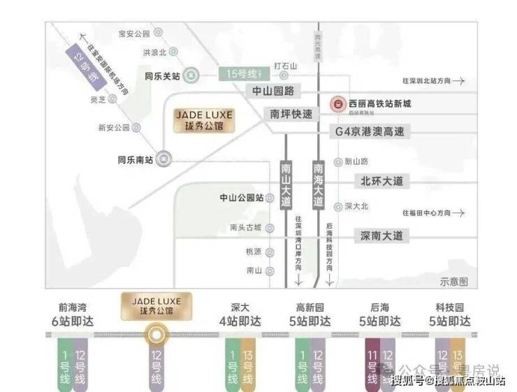 约3公里科技园、留仙洞总部基地;约4公里前海宝中深港合作区;约5公里后海金融总部基地;约6公里深圳湾超级总部基地;约12公里蛇口、腾讯全球总部⁽²⁾。
