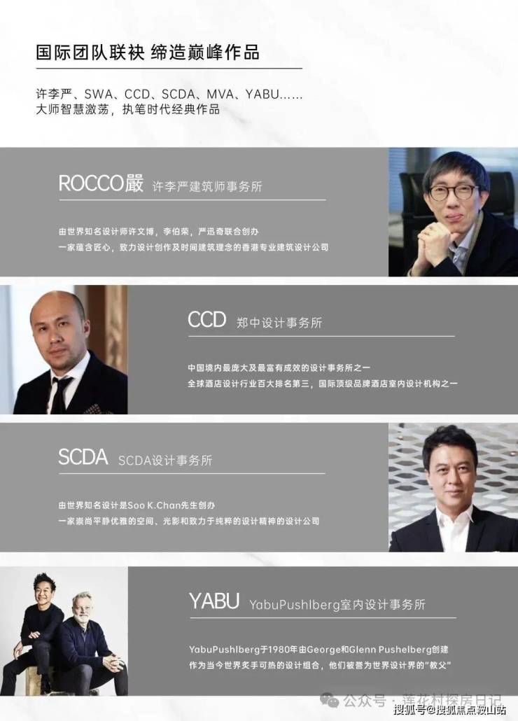 许李严、CCD、SCDA、YABU、ALT、SWA、MVA、迈进等国际顶级大师团队的智慧在此集结
