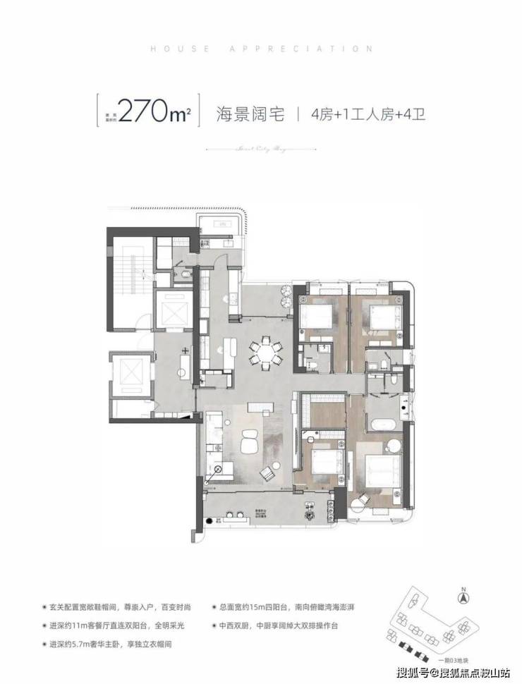 5. 建面约270㎡ 4+1房2厅4卫(顶奢楼王户型)