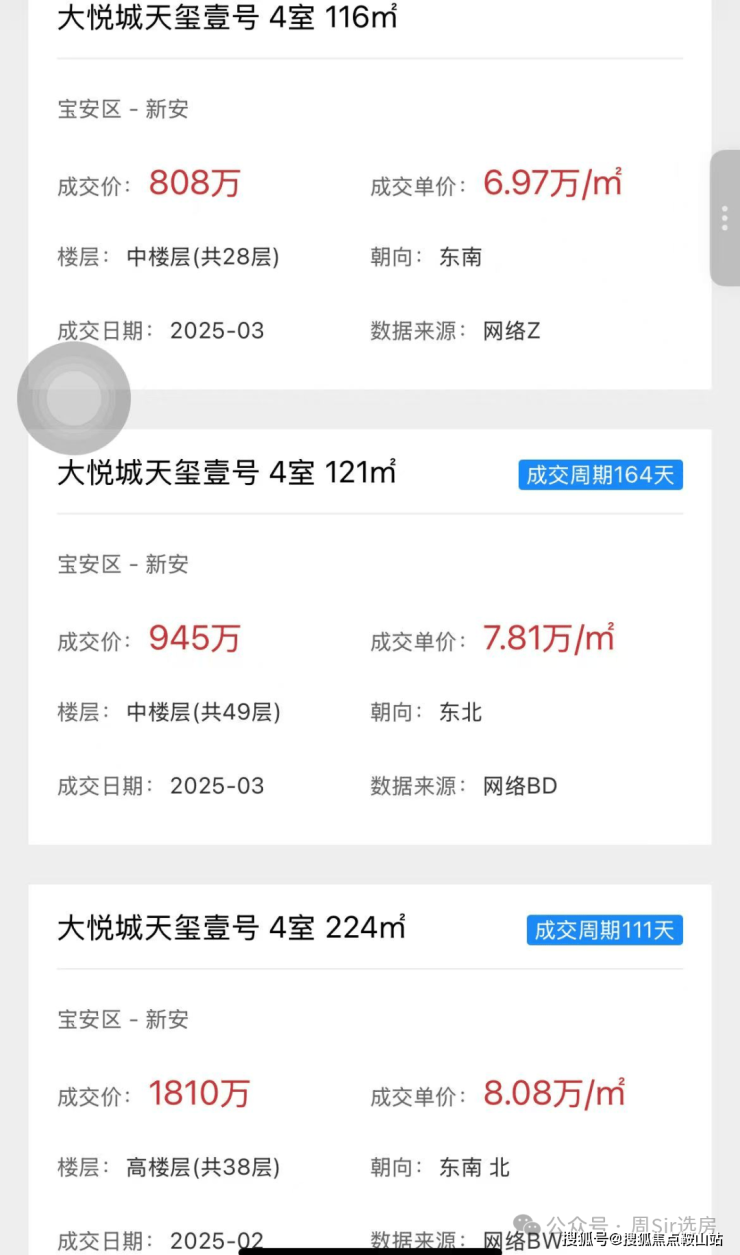 大悦城天玺壹号,今年3月成交一套120.93㎡户型,总价约945万,折合单价约7.81万/㎡。