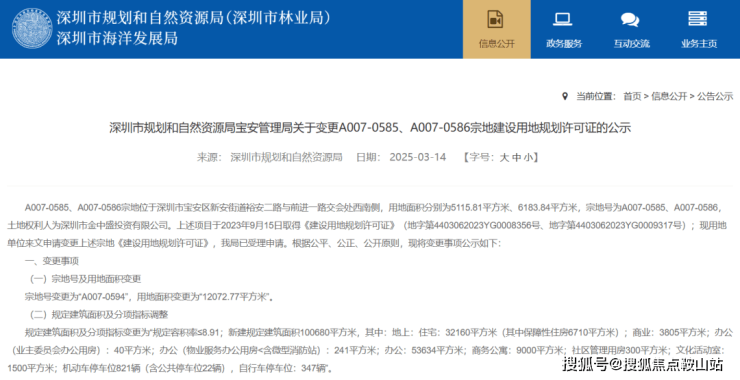 就在上周,深圳规自局宝安管理局发布公告,变更该项目用地的规划信息。