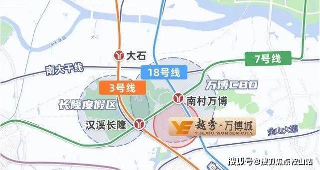 项目算是三地铁楼盘,最近的两条地铁线路分别是7号线以及18号线南村万博站,另外还有一条就是1.5公里的3号线汉溪长隆站,3号线比较远需公交或电瓶接驳。