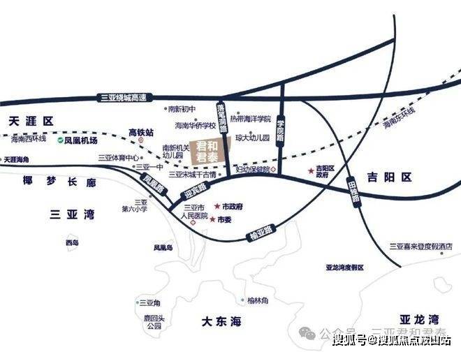 君和君泰项目位于三亚环城高速荔枝沟出口处(琼州学院对面),属于政府重点规划的月川—荔枝沟—抱坡岭片区,该区域重点规划定位为文化教育、商业贸易核心区;由学府教育区、公共服务区、行政商务区、生活配套区、文化商业区及品质居住区所组成。