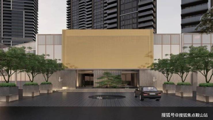 归家礼仪从奢雅酒店式落客开启,地面使用福鼎黑石材搭配两侧定制树箱,种植香橼,构筑出高奢酒店般尊贵的河岸艺术封面门仪。