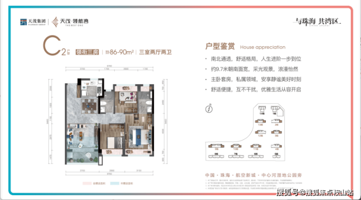 东临海岸线,尽享金湾情侣路的浪漫惬意;紧邻金湾中心河湿地公园,拥天然绿肺;府揽航空新城繁荣景象;坐享海、河、湿地、城四重景观。西部生态新城理想人居,享受高氧生态环境。