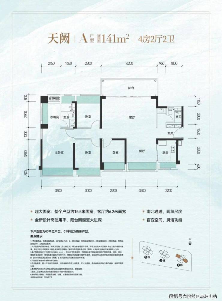 以豪宅标准打造超大户型面宽,约141㎡大四房户型,整个户型15.5米超大面宽、南北通透,客厅6.2米超大面宽,甚至具备可变“五房”的灵活空间改造潜力。