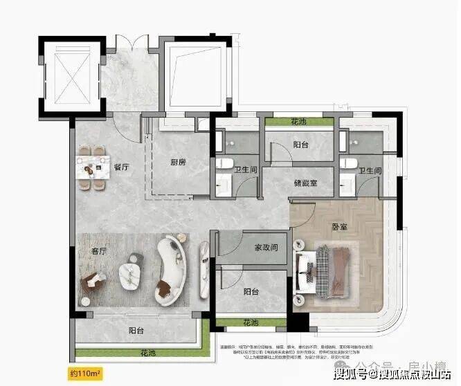 5,都做到了专梯入户,即使是最小面积的户型,也可以享受类侯梯厅入户的尊崇体验
