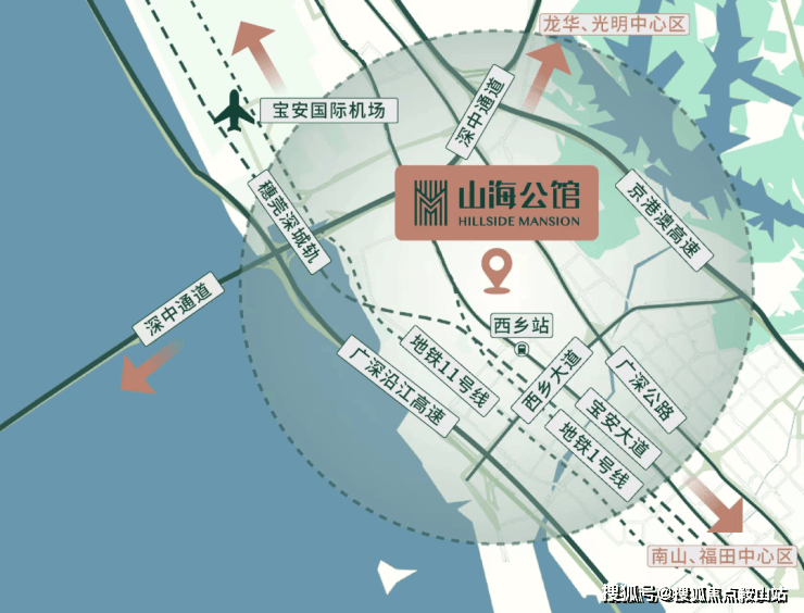 高速路网:广深沿江高速、京港澳高速、深中通道(预计2024年通车)环绕,轨道:东南约600米直达穗莞深城轨西乡站(预计2025年通车)码头:福永码头加持提速,快速抵达港珠澳,机场:宝安机场,一瞬抵达世界