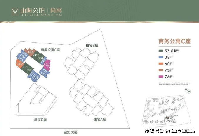 此次推出的产品推广名为京基智农山海尚寓,主推户型建面约38㎡单间、建面约57-76㎡1-2房现楼,层高3.15米,梯户比为4梯11户/3梯8户,物业管理公司为深圳市万科物业服务有限公司,管理费5.18元/㎡。公寓之前备案价5.4万,现在新备案价4.6万,折扣后均价3.9万,最低单价3万起,总价最便宜低至114万。本优惠到3月末。