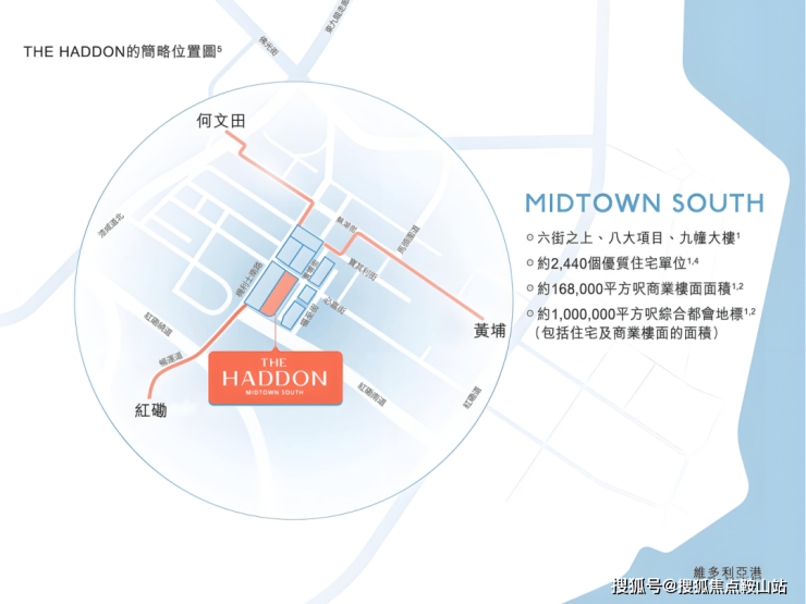 生活圈层:位于南九龙都会核心,规划横跨红磡六条主要街道,包括机利士南路、必嘉街、黄埔街、宝其利街、福至街及红磡南路一带,覆盖八大发展地段。