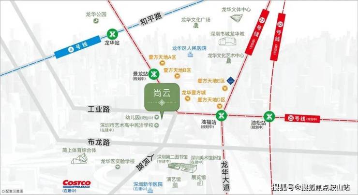 ⭐4号线(已开通):龙华站直线距离约1000m,深圳纵向城市交通中轴。