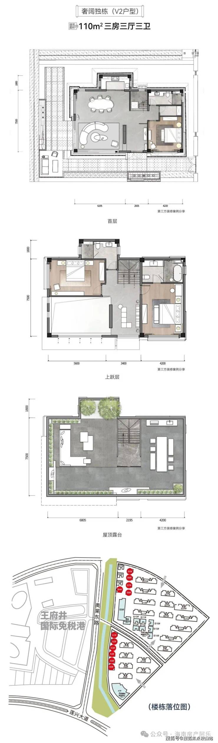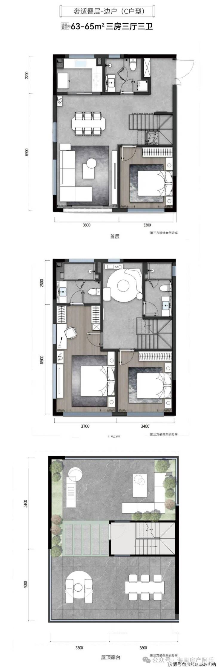①上叠:赠送约50-60平米屋顶露台