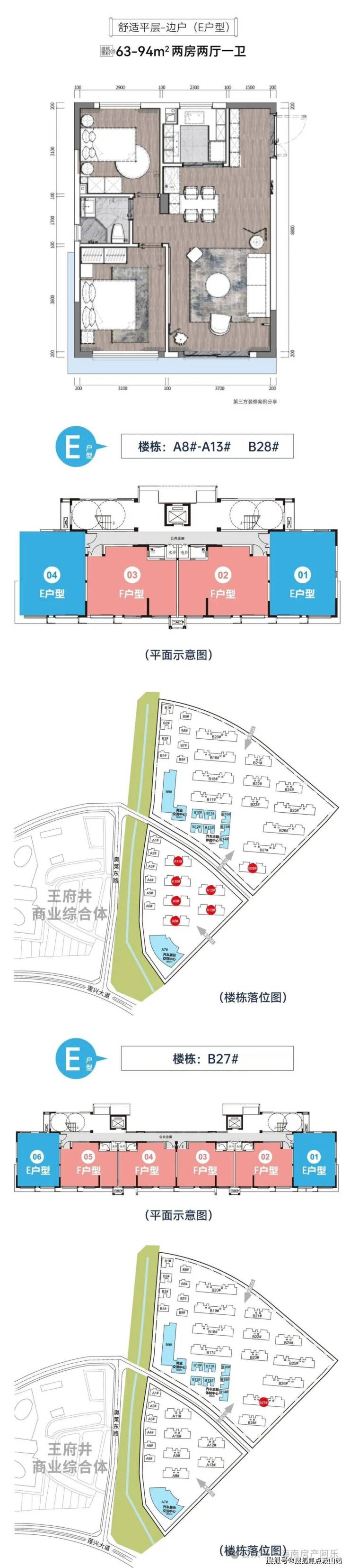 ①舒适平层: 建面约63-95㎡,层高3米