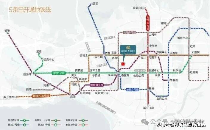 交通方面:双地铁口毗邻香蜜湖站(1号线)、香梅站(9号线),步行5-10分钟内,另外有1、2、7、9、11号等5条地铁线,快速通达全城,毗邻深南大道。