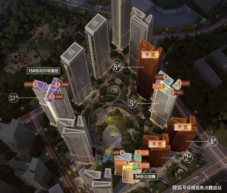 建面206㎡,一层虽然共有三户,但是每户带独立电梯厅,南北对流设计,南向阳台长约9.3米,13栋直面长隆欢乐世界景观非常好,双主套。