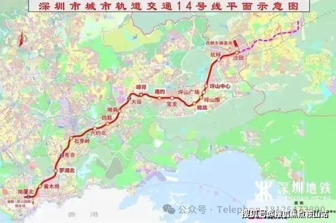 14号地铁线,该线路是从坪山沙田开往福田岗夏北的快速线,设计时速120公里,4站到大运,9站到布吉,10站到罗湖,12站到福田岗厦北,用时43分钟。