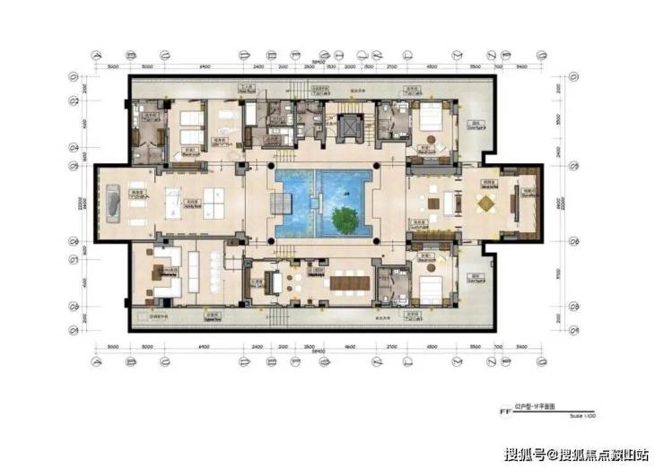 C1户型:建筑面积699㎡使用面积2200㎡,毛坯,售价1.32亿-1.6亿左右。