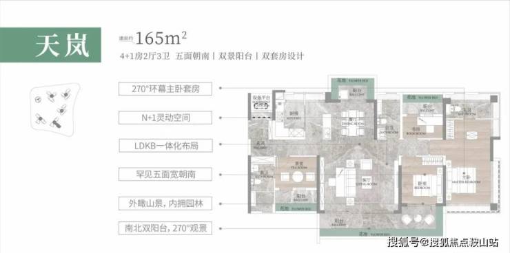 建面约165㎡大户型,三大极致打造相当震撼,朝南面宽达到约17.4米、近9米L型景观阳台、大方厅设计,景观阳台。