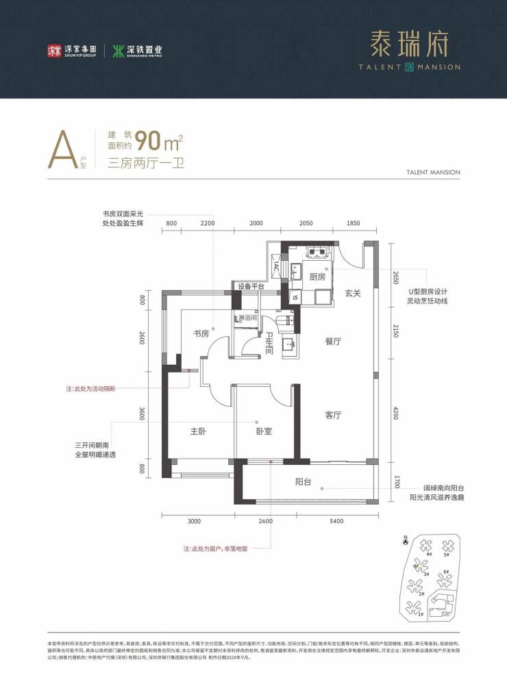 • 全南朝向:主要生活空间南向设计,3开间朝南;