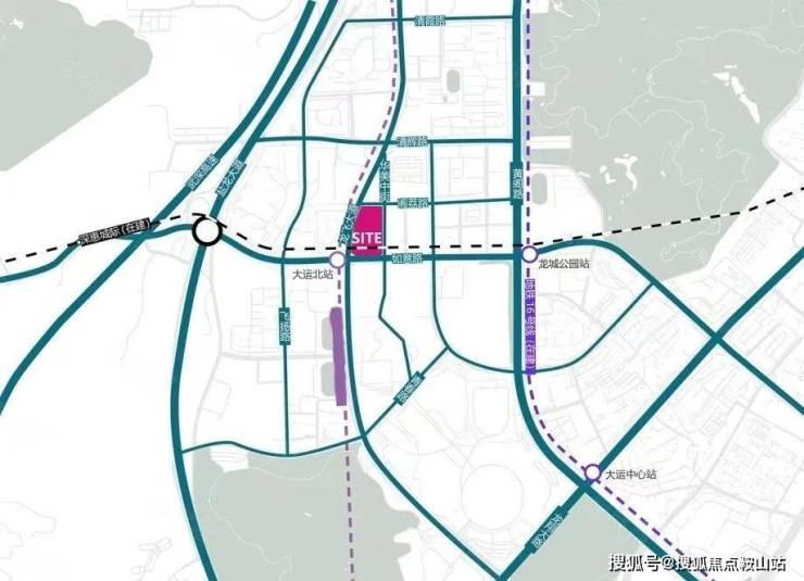 • 地铁:紧邻地铁16号线龙城公园站(约600米),2站大运枢纽。距21号线大运北站(规划中,约50米),10站南山;33号线(建设中)/深大城际(建设中)4站深圳北枢纽、5站西丽、8站前海;
