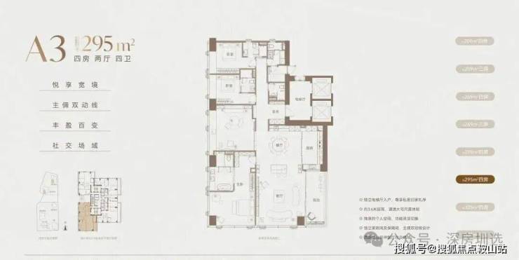 ②高区42F起(150-200米)是约370-375-403㎡4+1房五卫+家庭厅+家政套间;