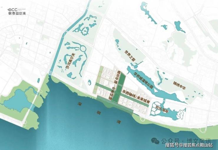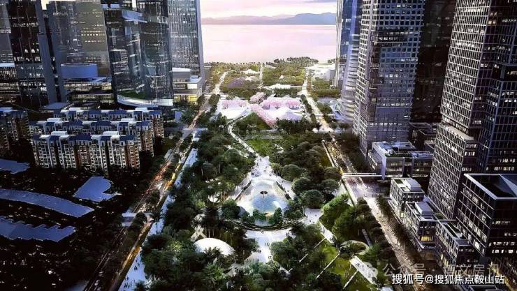 ▌超级生态融合║山海城共生的韧性城市深超总拥有海、湖、湿地、公园、高尔夫五重稀缺生态资源,通过中央绿轴打造"超级校园"生态模式。滨海大道下沉,将释放约10万平方米地面空间,无缝连接深圳湾公园,形成连续的滨海公共空间。中央绿轴地下空间面积约30万平方米,投资95亿元,将建成连接地下枢纽与地面生态的超级系统。这种设计使深超总成为高密度城市环境下生态融合的典范,实现"在城市中漫步自然,在自然中享受城市"。