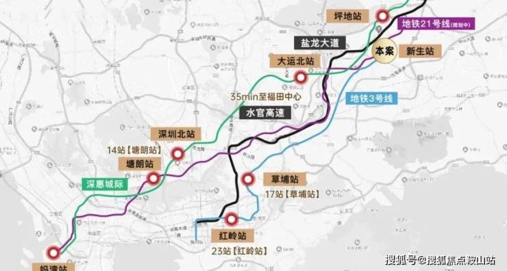 1城际:21号线2站龙城站无缝换乘深惠城际(建设中),可1站大运中心、5站深圳北站、6站西丽枢纽、9站直抵前海,快速通达全市;
