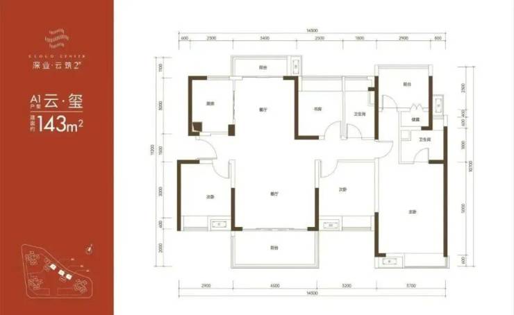 143㎡的5房2厅2卫,折后总价539-589万/套,单价3.76-4.11万/㎡。
