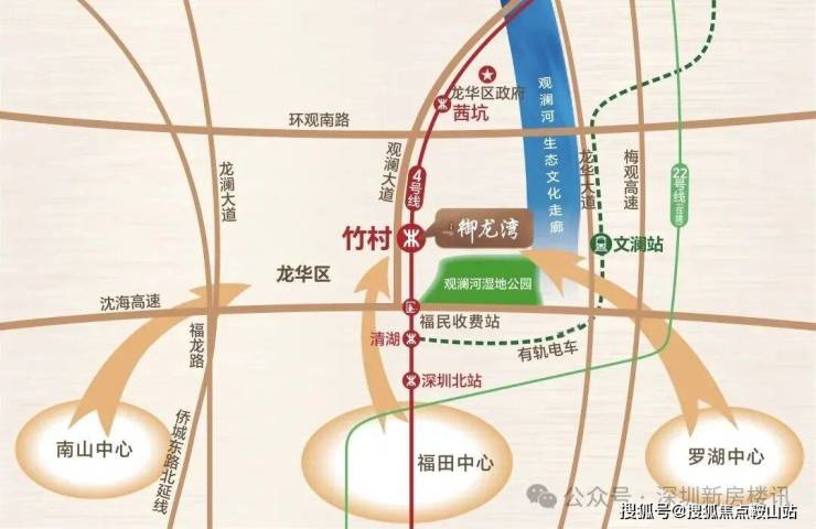 四纵:紧邻观澜大道,周边龙澜大道、龙华大道、梅观高速环绕;