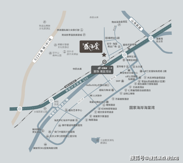距三亚市中心约28km、海棠湾高铁站(规划中)约2km、三亚凤凰国际机