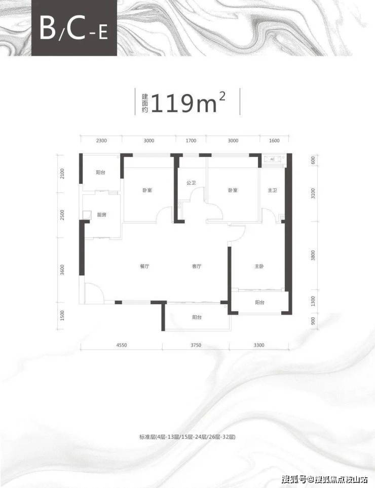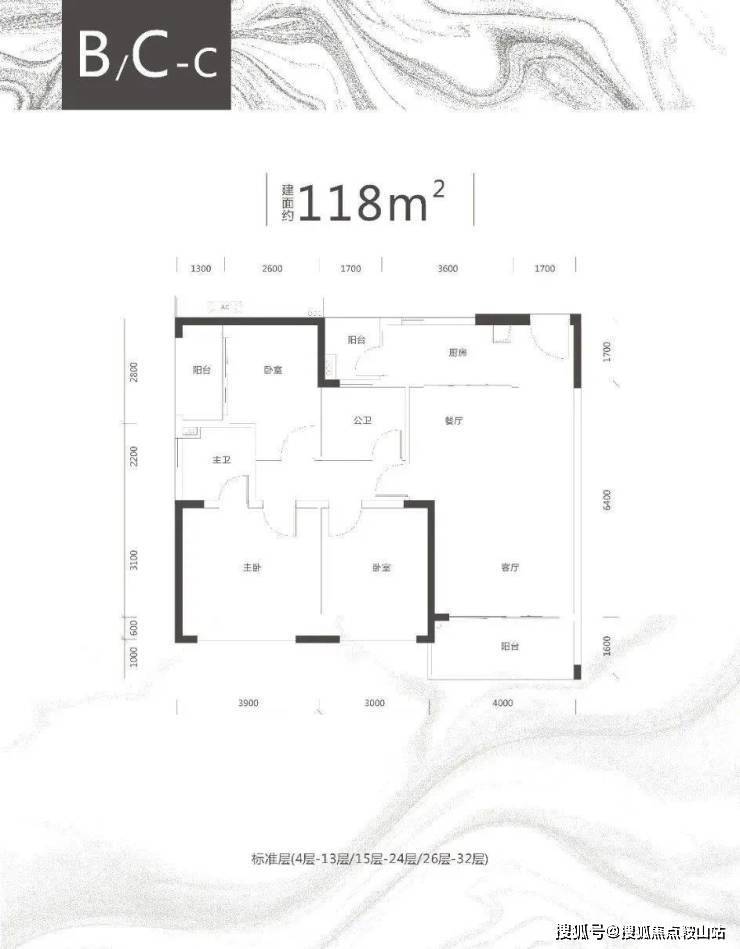 云玺锦庭 C 栋 B/C/E 户型、约 118-119㎡三房两厅两卫