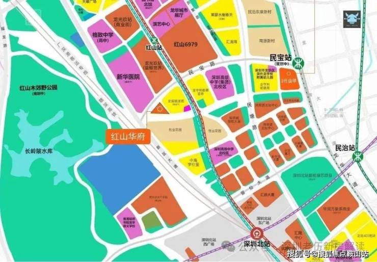 项目距离红山站步行仅约400米,可换乘深圳地铁4号线、6号线,1站直达深圳北站。