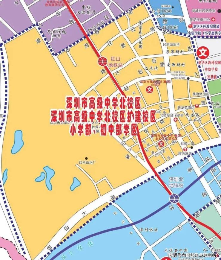 红山华府位于新区大道与民宝路交汇处,距离地铁4号线红山站约400米,旁边即是深圳新华医院。红山板块是龙华的中央居住区,龙华最热门的置业区域,片区配套完善,居住氛围浓厚。