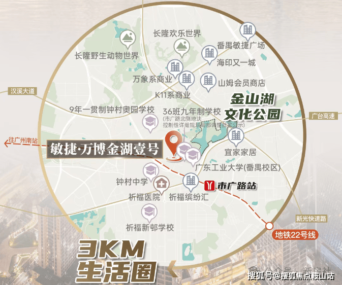 敏捷·万博金湖壹号,背靠万博区域,3公里内就聚集了祈福、长隆、万博三大商圈。商业能级和确定性,都超过了番禺多数新规盘。