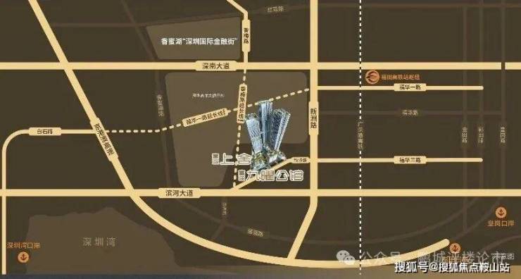 项目占位深圳最高水平金融总部聚集区、国家级南方金融中心的香蜜湖金融中心南区。规划香梅路延长线/福华一路延长线穿过深圳高尔夫公园,将形成香蜜湖北、中、南区高效内循环,未来项目约一公里直达香蜜湖金融中心中区,与国际交流中心、深圳改革开放展览馆、国际演艺中心、深圳金融文化中心四大地标配套为邻。