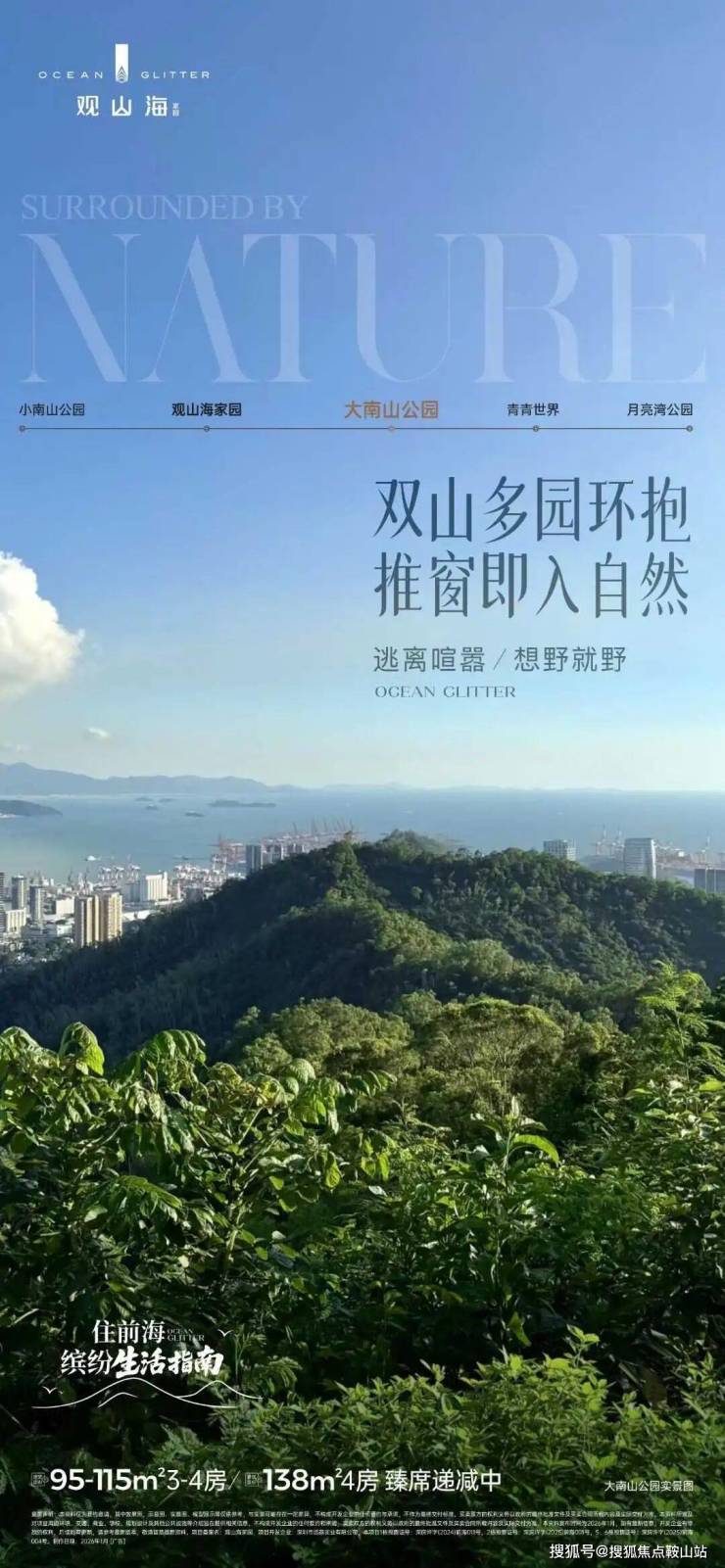 观山海家园由国企远洋集团联合荔源实业开发,坐落于南山前海荔湾板块,背靠大南山,隶属前海扩容核心辐射区,70年产权精装准现楼在售,主体已封顶,预计2026年10月提前交付,主打低密改善定位,适配多孩家庭与前海、科技园通勤人群,兼具生态宜居与资产保值性。