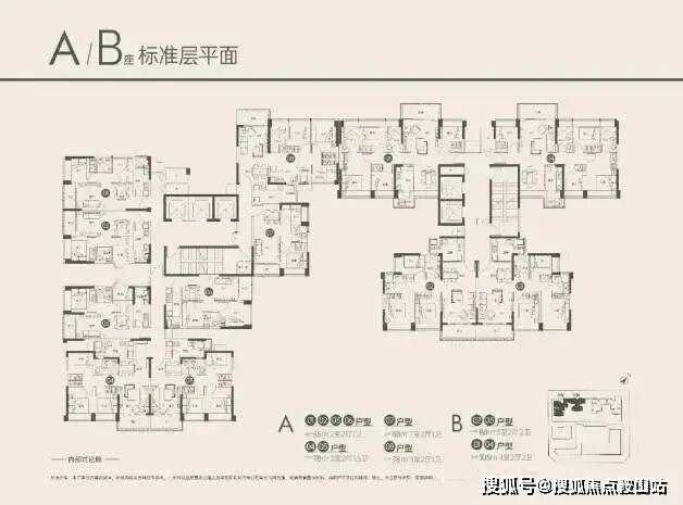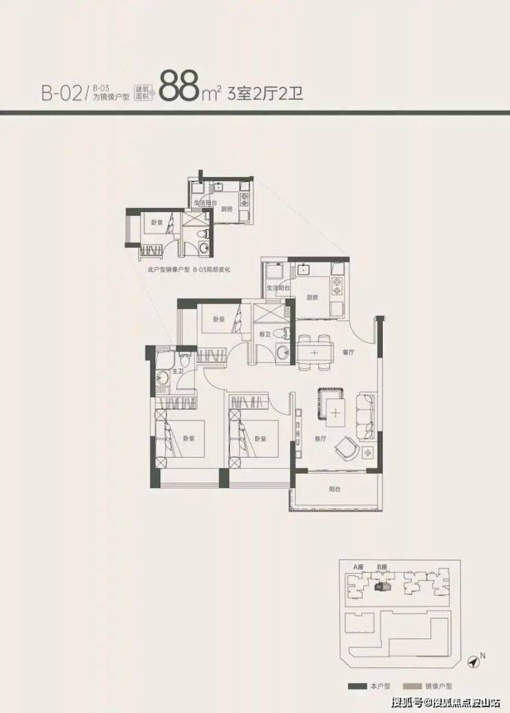 位于1B座是两梯四户的格局,尺度感不亚于目前市面上95㎡的产品。