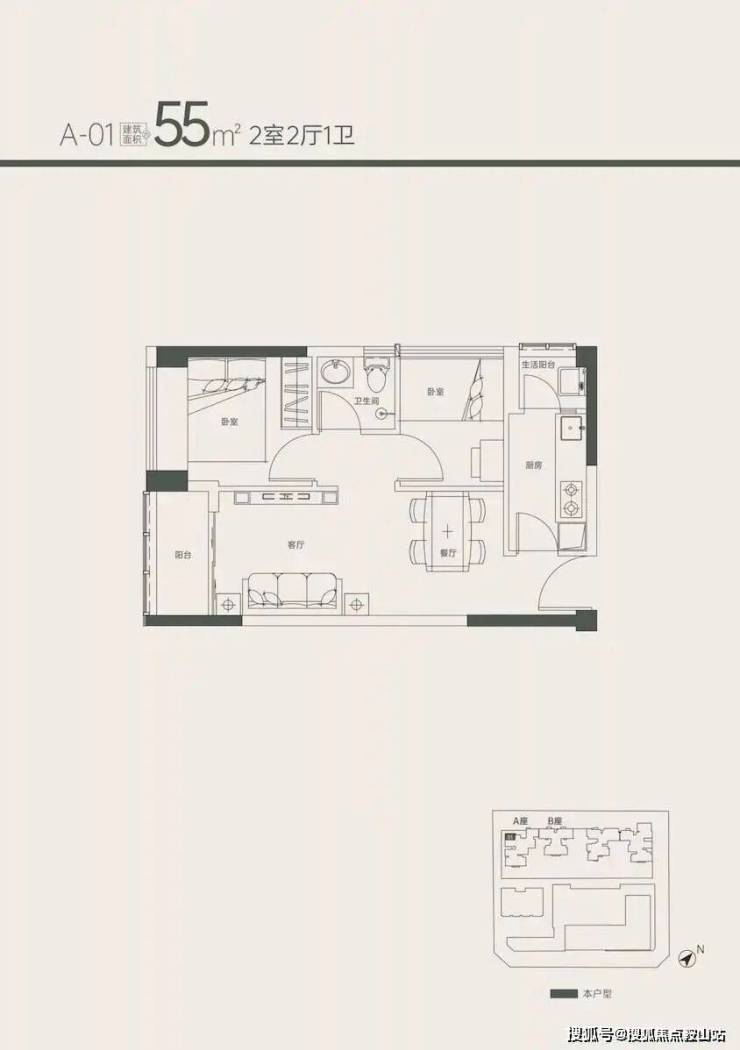 相较于55㎡户型这个两房的亮点在于厨房是真的太爽,还能设计推门整个空间看起来会比55㎡的两房大,东南向朝向也更优质。