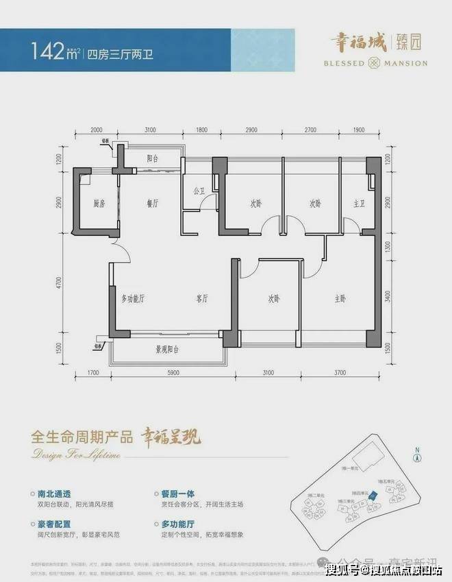 建面约142㎡4房3厅2卫(方厅)