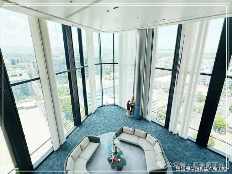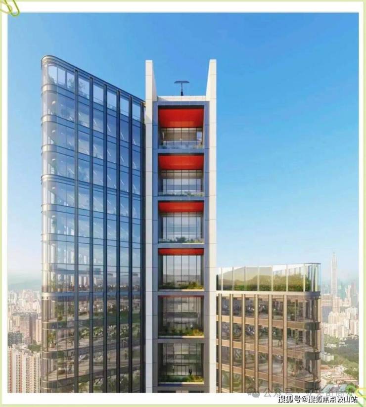 这里功能多元,低区设有共享办公区与健康中心,中高区打造灵活商业办公空间,西翼层叠式绿色露台与河套中心公园衔接,形成 “垂直绿谷”,观赏绝佳。南北两侧的裸露钢结构机械销轴观光电梯,更是国内首创。