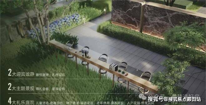 将自然之美与精致工艺融为一体,打造景观会客厅、艺术水景、户外吧台、阳光草坪等静谧空间。