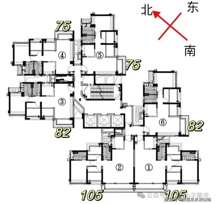 【楼栋总数】1-2#楼:3梯6户的四开间朝阳户型