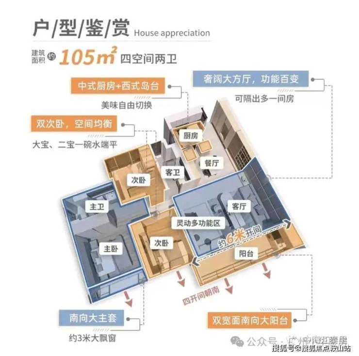 2) 秉承中海高颜地标,爆款升级 76-105 ㎡三至四空间两卫,坚守中海高颜路线