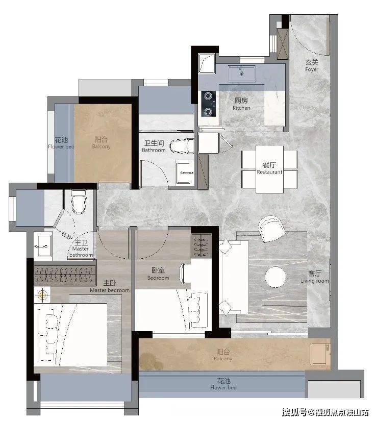 约84㎡三房两厅两卫,南向双瞰景阳台,尽揽四时园境,U型明厨、瞰景餐厅,优雅美味时光,阔绰套房式主卧,尊享私密雍容,南北对流设计,四季享新鲜氧气