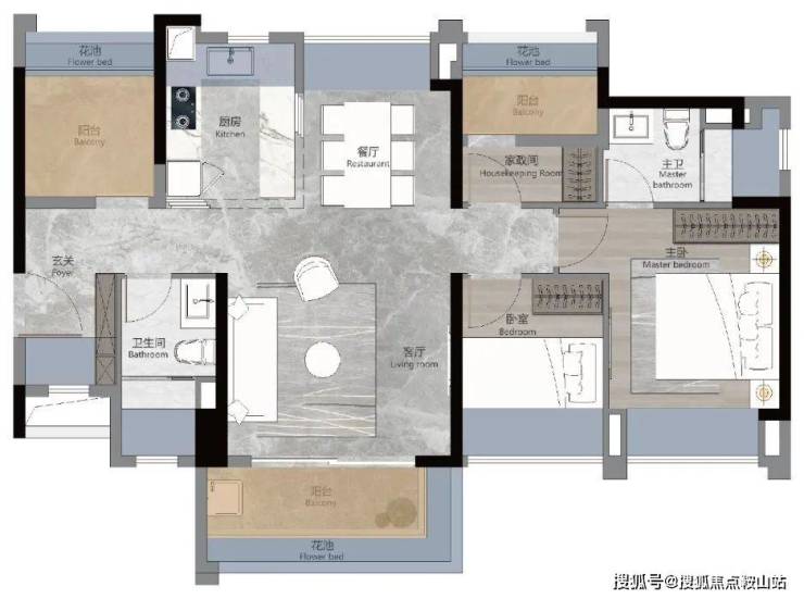 约95㎡四房两厅两卫,五开间朝南,自在追逐清风暖阳,超阔瞰景阳台,四时美景入怀,南北对流设计,四季享新鲜空气,奢阔私密主卧套房,升阶生活仪式感