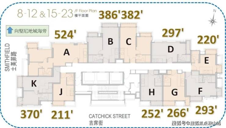 标准户共有165伙,分布于7至30楼,实用面积为211至1,012尺,户户配置22尺露台,逾半数单位另设有16或17尺工作平台。