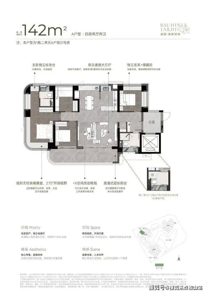 3.引入创新的4梯5户分布式电梯设计,确保每户都能尊享专属的电梯入户体验。